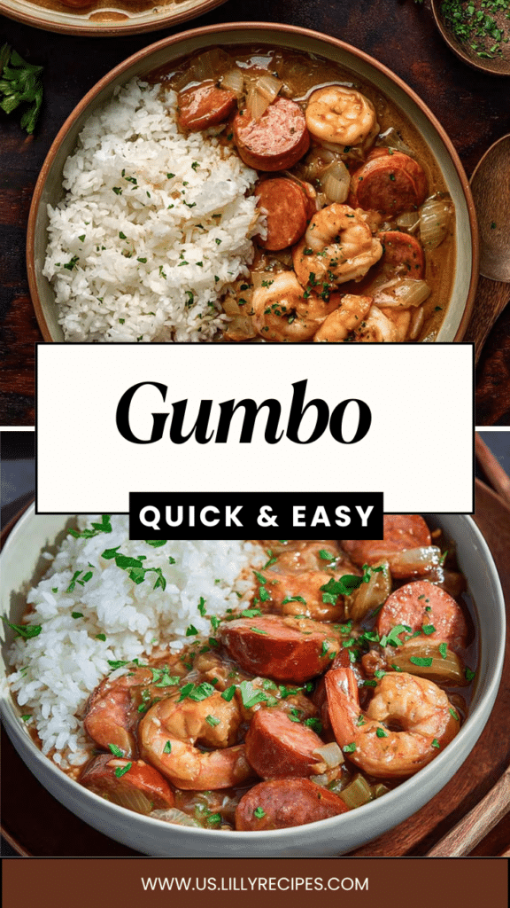 Gumbo is a classic Southern dish known for its rich, complex flavors and hearty, comforting texture. This easy-to-follow Authentic Cajun Gumbo recipe combines smoky andouille sausage, tender shrimp, fresh vegetables, and a deep, flavorful roux to create a thick, satisfying stew that’s perfect for a family dinner or special occasion. Served over fluffy white rice, this gumbo balances savory, spicy, and aromatic notes in every spoonful. The combination of a deeply browned roux, aromatic vegetables, and a blend of seasonings creates a signature Louisiana flavor that’s bold, rich, and unforgettable. If you’re searching for a traditional gumbo recipe, shrimp gumbo, or a one-pot comfort meal that feeds a crowd, this Authentic Cajun Gumbo delivers tender shrimp, smoky sausage, and perfectly seasoned broth with incredible depth of flavor.