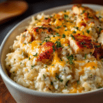 Baked Caesar Chicken with Creamy Parmesan Sauce is a simple yet indulgent dish that transforms everyday chicken breasts into a rich, comforting meal. The creamy, garlicky sauce paired with tender chicken makes it perfect for weeknights or special dinners. With minimal prep, pantry-friendly ingredients, and elegant presentation, this recipe is a family-friendly crowd-pleaser you’ll want to make again and again.