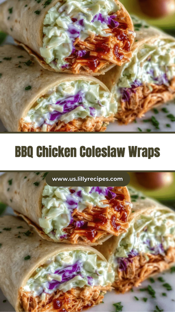 Serve the wraps cut diagonally to highlight the layers of BBQ chicken and coleslaw. These wraps pair well with simple sides and are easy to pack for lunches, picnics, or quick dinners.
