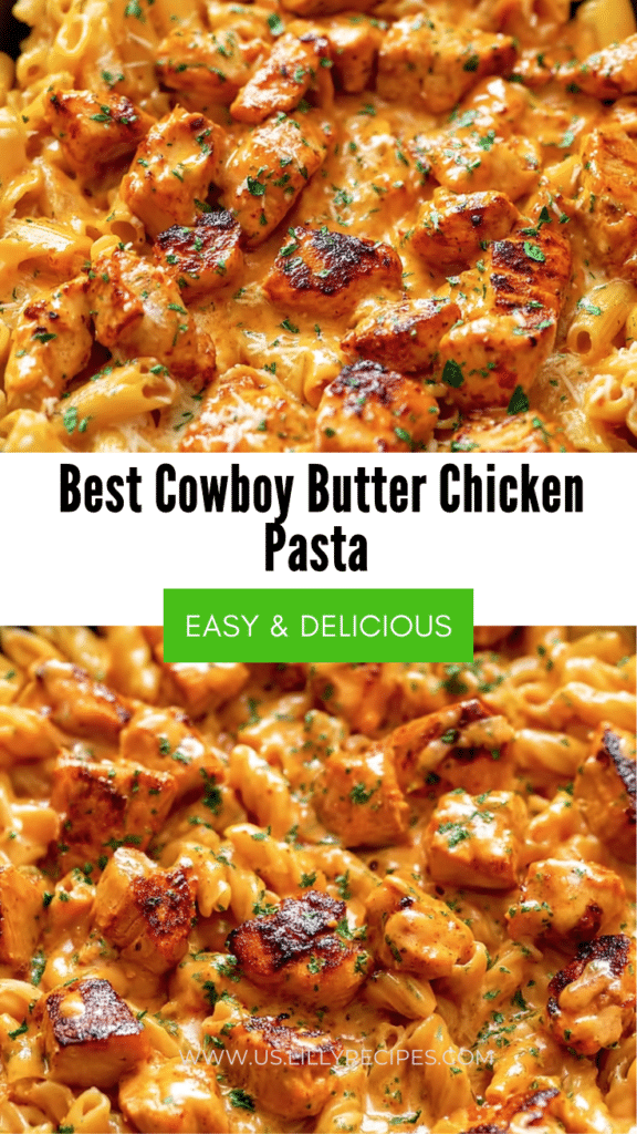 Best Cowboy Butter Chicken Pasta is the ultimate creamy garlic dinner that’s quick, flavorful, and perfect for busy weeknights. The tender chicken, buttery sauce, and perfectly cooked pasta combine for a restaurant-quality experience at home. Garnished with Parmesan and parsley, it’s visually stunning and delicious. Try it tonight for a family-friendly, creamy, and indulgent pasta dinner that will quickly become a favorite.