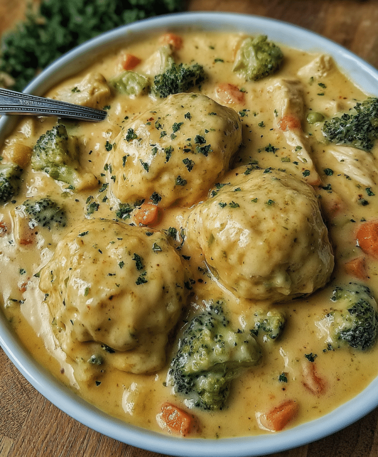 Broccoli Cheddar Chicken and Dumplings is a comforting, cheesy, and hearty one-pot meal that combines tender chicken, fresh broccoli, and melty cheddar with fluffy dumplings. Perfect for cozy weeknight dinners or family gatherings, this casserole is rich, satisfying, and easy to prepare. Its creamy texture, cheesy flavor, and tender dumplings make it a dish everyone will love. Serve warm, enjoy the comforting goodness, and save this recipe for your next cozy dinner night.