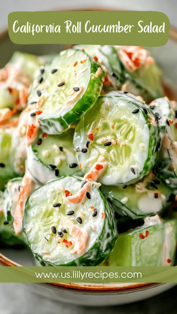 A refreshing, no-cook California Roll Cucumber Salad inspired by sushi flavors. Perfect as a light appetizer or side dish.