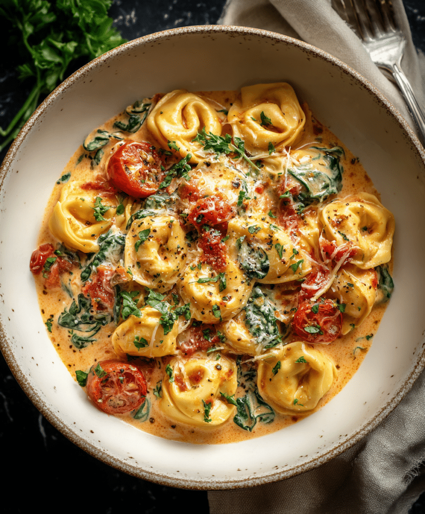 Few dishes capture the magic of comfort food like Creamy Garlic Tortellini with Herb-Seared Chicken. This recipe brings together tender, golden chicken infused with Italian herbs, paired with pillowy cheese …