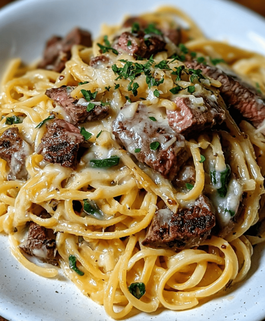 Juicy steak bites, tender linguine, and fresh spinach come together in a rich cowboy butter cream sauce infused with garlic, lemon, and Dijon mustard. This pasta delivers a restaurant-quality meal …
