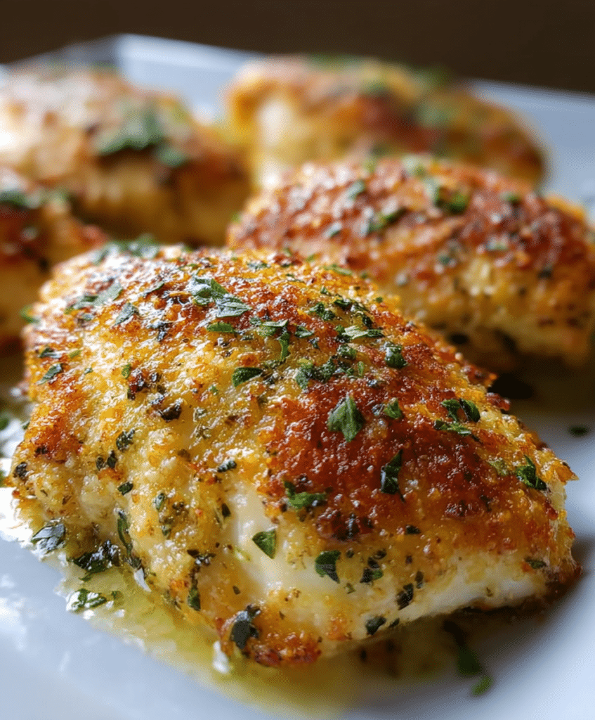• Baked Garlic Parmesan Chicken – Crispy, Cheesy, and Juicy