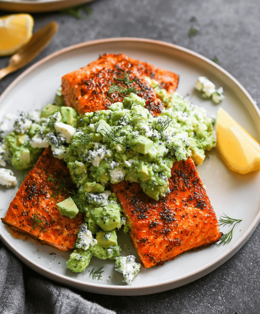 This Baked Salmon with Avocado & Feta is everything a weeknight dinner should be: quick, nourishing, and packed with fresh, vibrant flavor. Tender salmon fillets are baked until perfectly flaky, …