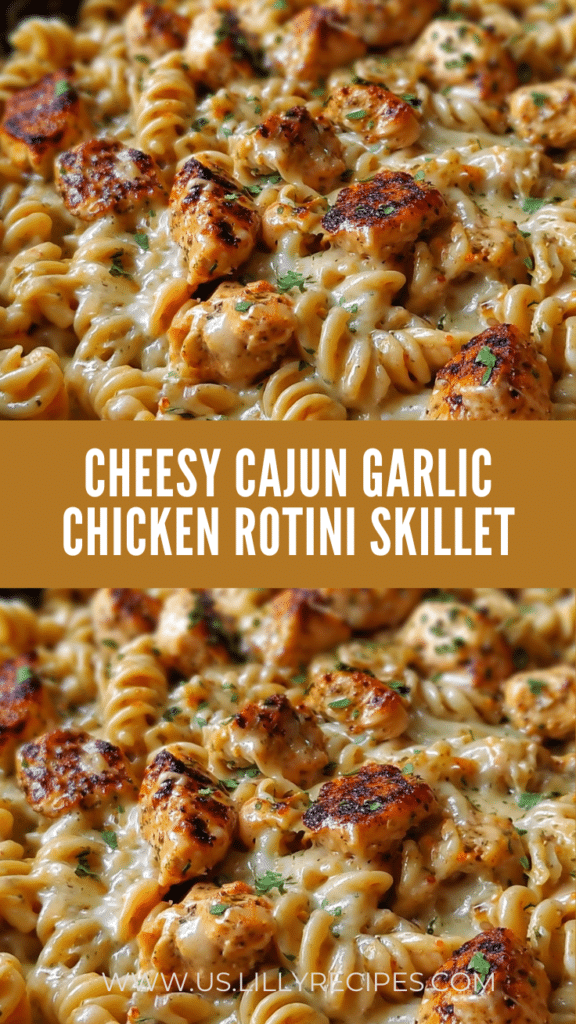 Cheesy Cajun Garlic Chicken Rotini Skillet is a quick, flavorful, and indulgent weeknight dinner that combines tender chicken, perfectly cooked rotini, and a rich, creamy cheese sauce with bold Cajun seasoning. It’s easy to make, satisfying, and versatile enough for families or casual gatherings. Save this recipe for busy evenings, share with loved ones, and enjoy a comforting skillet meal that never disappoints.