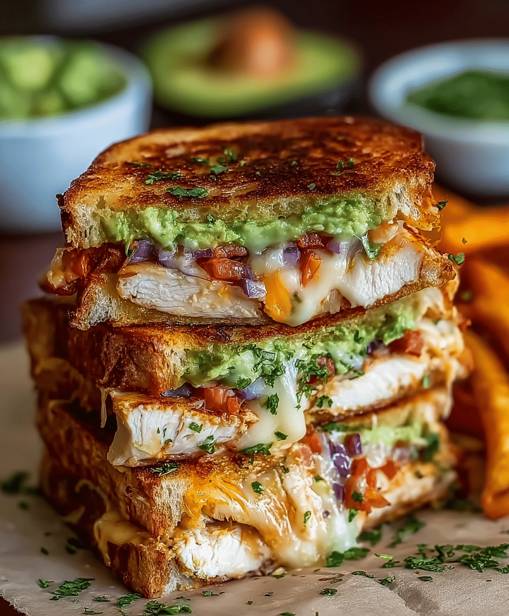 A delicious Chicken Avocado Melt Sandwich that combines grilled chicken, creamy avocado, and melted cheese for a delightful meal.