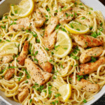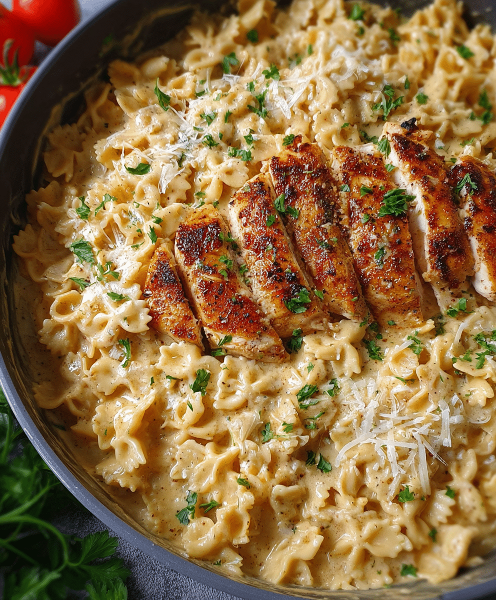 Chicken Garlic Parmesan Pasta is a quick, comforting, and flavorful meal that transforms simple ingredients into a creamy, restaurant-quality dinner. With tender chicken, rich Parmesan cream sauce, and perfectly cooked farfalle, it’s perfect for busy weeknights or meal prep. Easy to customize with vegetables or spice adjustments, this versatile dish is sure to become a family favorite. Save this recipe and enjoy a quick, indulgent, and satisfying dinner anytime.