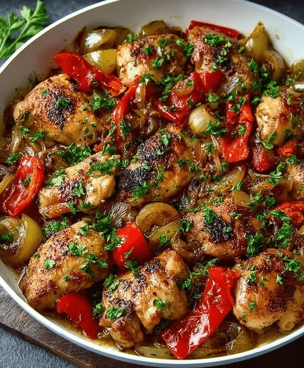 If you’re craving a bold, flavorful, and hearty Italian dish, this Chicken Scarpariello recipe is a must-try. Featuring succulent bone-in chicken thighs and drumsticks, smoky Italian sausage, tender bell peppers, and a tangy, garlicky sauce, this skillet dish is a true comfort food classic. The combination of white wine, apple cider vinegar, and Worcestershire sauce creates a rich, complex sauce that perfectly balances savory, tangy, and slightly spicy notes. Perfect for family dinners, special occasions, or cozy weeknight meals, this Chicken Scarpariello delivers bold Italian flavors in one skillet with minimal fuss. Garnished with fresh parsley, it’s a beautiful, aromatic dish that’s as stunning on the plate as it is delicious in every bite.