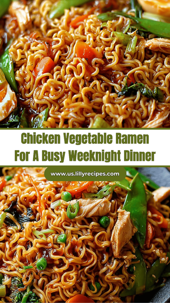 Chicken Vegetable Ramen Noodles is a quick, flavorful weeknight dinner that combines tender chicken, fresh vegetables, and savory noodles in a single pan. Ready in just 18 minutes, this recipe is perfect for busy families or anyone craving a comforting, home-cooked ramen-style meal. With a caramelized soy and hoisin sauce coating the chicken and vegetables, tender noodles absorbing every bit of flavor, and a touch of sweetness from mirin, this dish delivers restaurant-quality taste in minimal time. Garnished with fresh green onions, it’s a visually appealing, satisfying, and nourishing meal the whole family will enjoy.