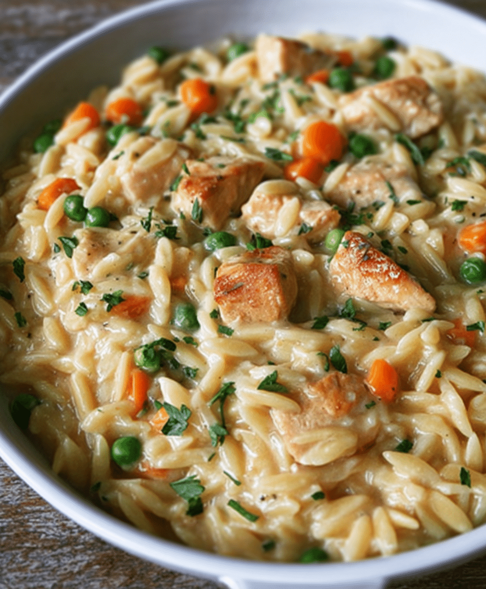 There’s something deeply comforting about a warm, creamy, home-cooked meal that fills the kitchen with inviting aromas and makes everyone at the table feel cozy. Enter Creamy Chicken Pot Pie Orzo — the ultimate one-pot comfort food that gives you all the classic flavors of a chicken pot pie without the hassle of a crust.