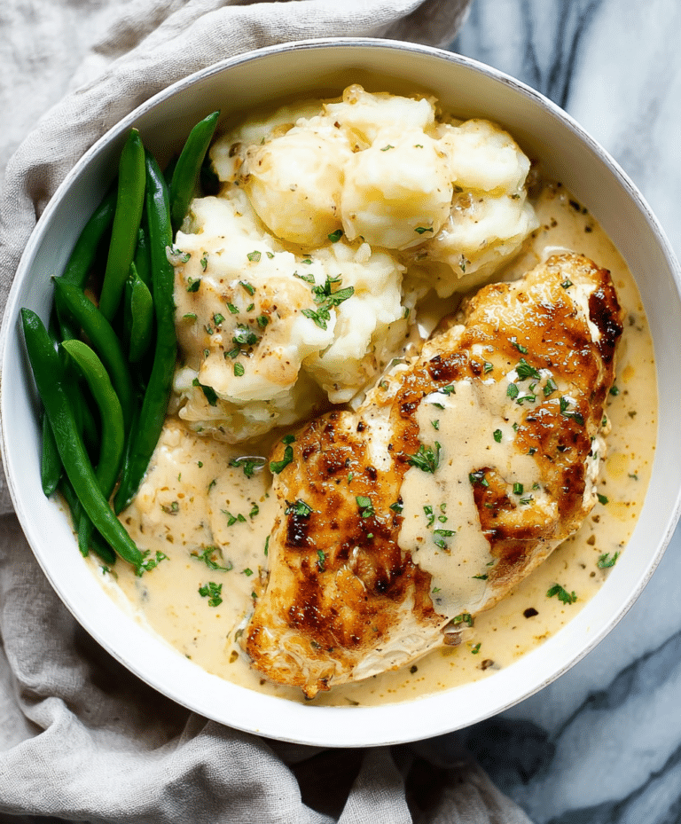 Creamy Ranch Chicken is one of those comforting, dependable dinner recipes that earns a permanent place in your weekly rotation. It’s rich without being complicated, bold without being overpowering, and incredibly easy to pull together in a single skillet. Tender, pan-seared chicken breasts are finished in a velvety cream sauce flavored with zesty ranch seasoning, Italian herbs, and a touch of onion powder. The result is a cozy, family-friendly meal that tastes like it took far more effort than it actually did.