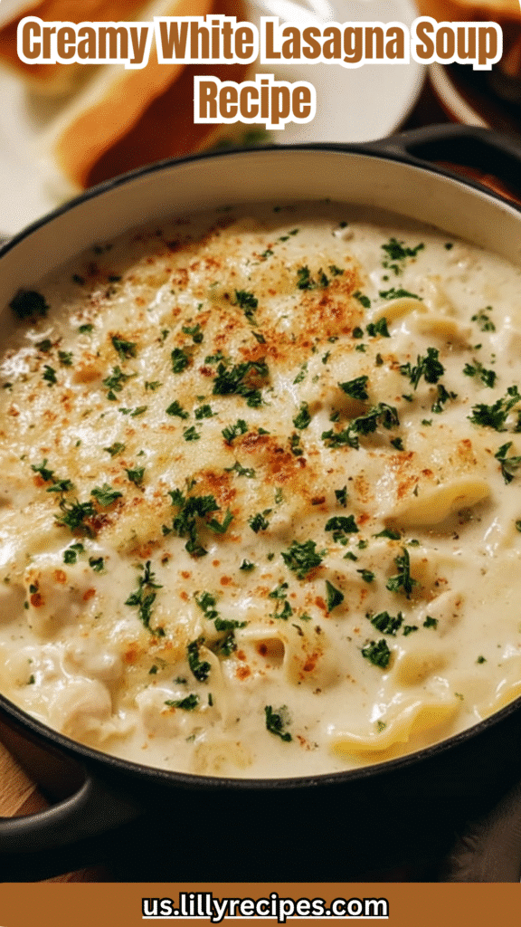 Creamy White Chicken Lasagna Soup combines the comforting flavors of classic lasagna with the warmth of a hearty soup. Tender chicken, al dente lasagna noodles, creamy broth, and melted cheese create a cozy meal perfect for any season.