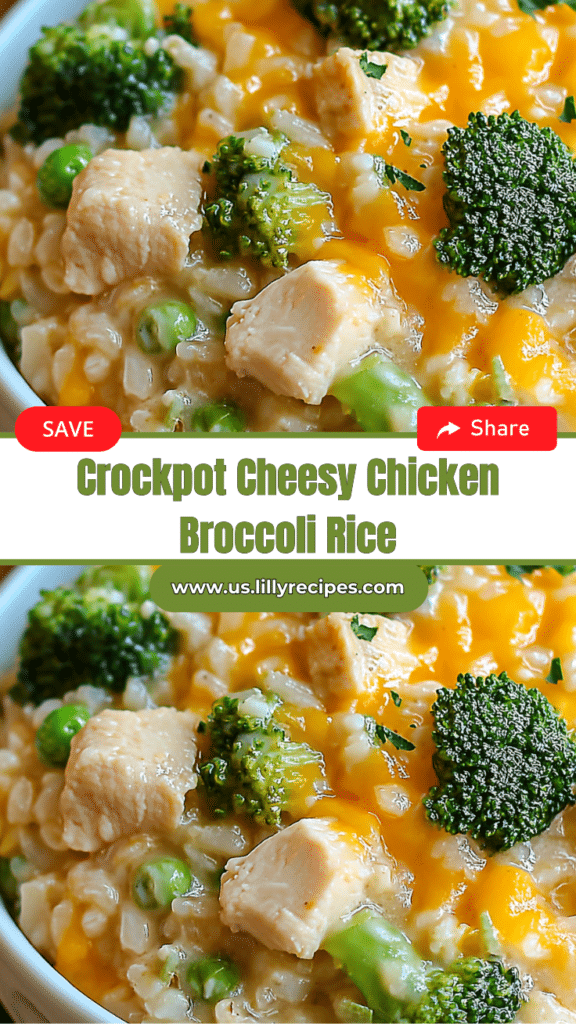 Crockpot Cheesy Chicken Broccoli Rice is a comforting, creamy, and easy one-pot meal that’s perfect for busy families or anyone craving a hearty dinner with minimal effort. Tender chicken, crisp broccoli, and fluffy rice come together in a rich, cheesy sauce that warms the soul. This slow cooker recipe is a complete meal in a single pot, ideal for weeknights, casual dinners, or meal prep. Save it, try the variations, and share this delicious comfort food with your loved ones — it’s destined to become a staple in your family dinner rotation.