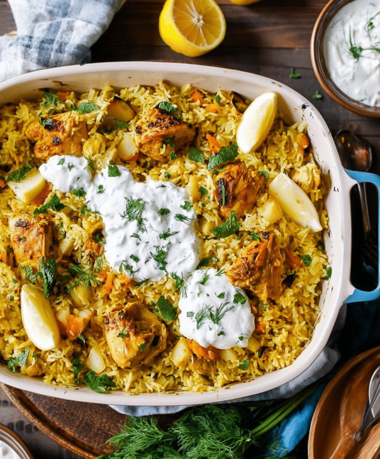 If you’re looking for a dinner that delivers bold Mediterranean-inspired flavor with almost no effort, Dump-and-Bake Chicken Tzatziki and Rice is exactly the kind of recipe you want in your regular rotation. This dish combines tender, well-seasoned chicken, fluffy long-grain rice, fresh zucchini, and warm spices, all baked together in one pan until perfectly cooked. The result is a satisfying, comforting meal that feels special while remaining incredibly practical.