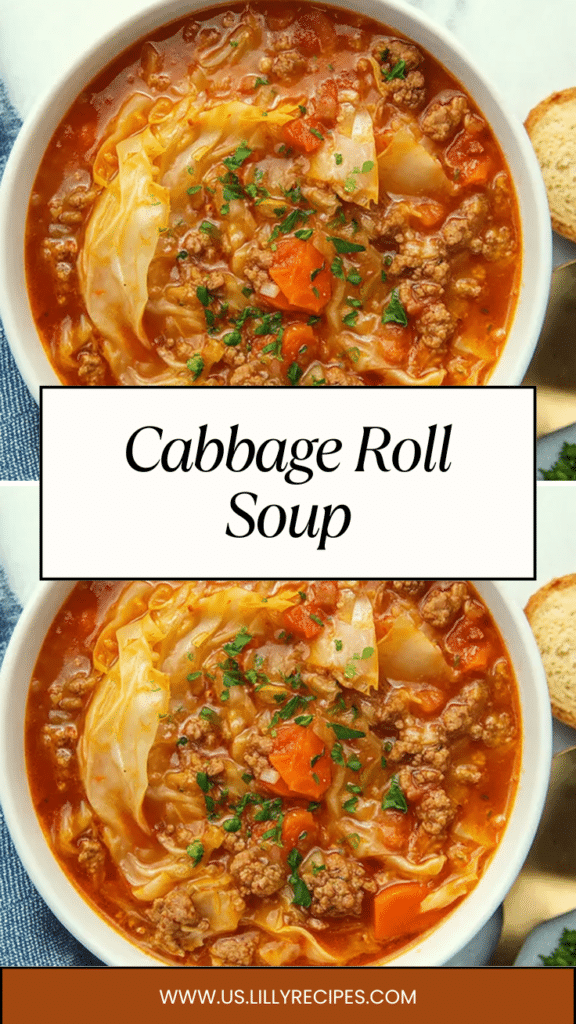 Cabbage Roll Soup is the ultimate comfort food, bringing all the flavors of traditional cabbage rolls into a quick, one-pot soup. Hearty, savory, and slightly sweet, this recipe is perfect for family dinners, weeknight meals, or meal prep for the week ahead. With tender beef, soft rice, and flavorful vegetables in a rich tomato and broth base, every spoonful is satisfying and comforting. Save this recipe, share it with friends, and enjoy the warmth and comfort of a homemade bowl of Cabbage Roll Soup anytime.