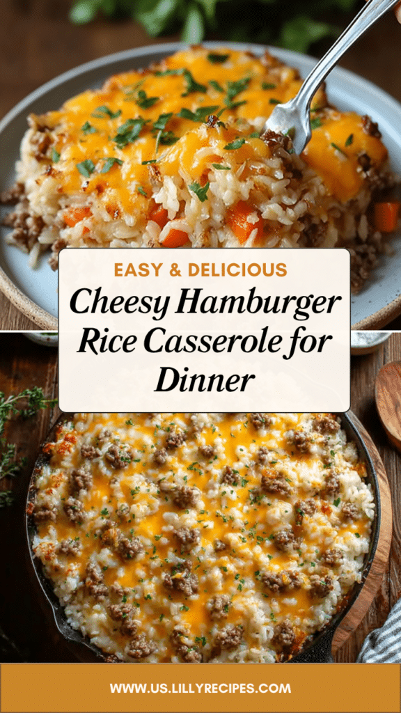 This Cheesy Hamburger Rice Casserole is the ultimate easy comfort food dinner, combining hearty ground beef, tender rice, and melty cheddar cheese in one satisfying baked dish. If you’re looking for a simple cheesy hamburger rice casserole that’s budget-friendly, filling, and perfect for busy weeknights, this recipe delivers everything you need. The rich, savory beef mixture blends with creamy mushroom soup and fluffy rice, creating a warm, cohesive texture, while the golden melted cheese topping adds the perfect finishing touch. This cheesy hamburger rice casserole is ideal for family dinners, meal prep, or cozy evenings when you want something homemade, comforting, and incredibly easy to prepare.