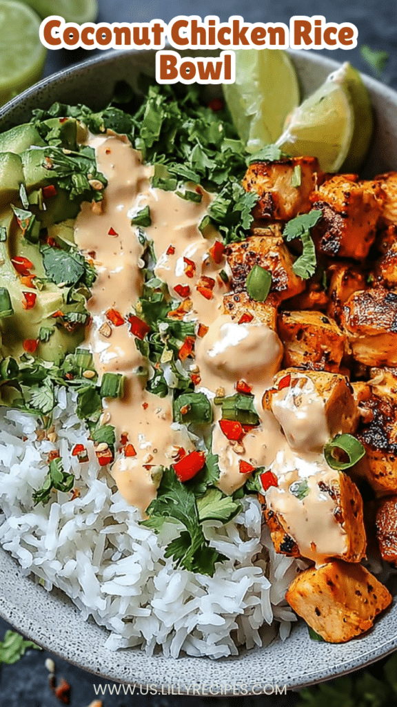 The Coconut Chicken Rice Bowl is the perfect easy weeknight dinner when you want something creamy, comforting, and packed with tropical flavor without spending hours in the kitchen. This Coconut Chicken Rice Bowl combines tender sautéed chicken, fragrant garlic and ginger, silky coconut milk sauce, and fluffy rice into one satisfying bowl. It’s ideal for busy families, meal preppers, or anyone craving a quick homemade rice bowl recipe with bold flavor and simple ingredients. Ready in just 30 minutes, this tropical chicken rice bowl delivers savory, lightly sweet, and citrusy notes in every bite. The creamy coconut sauce coats the chicken beautifully while fresh lime juice and herbs brighten the dish, making it perfect for weeknight dinners, casual entertaining, or healthy meal prep lunches.