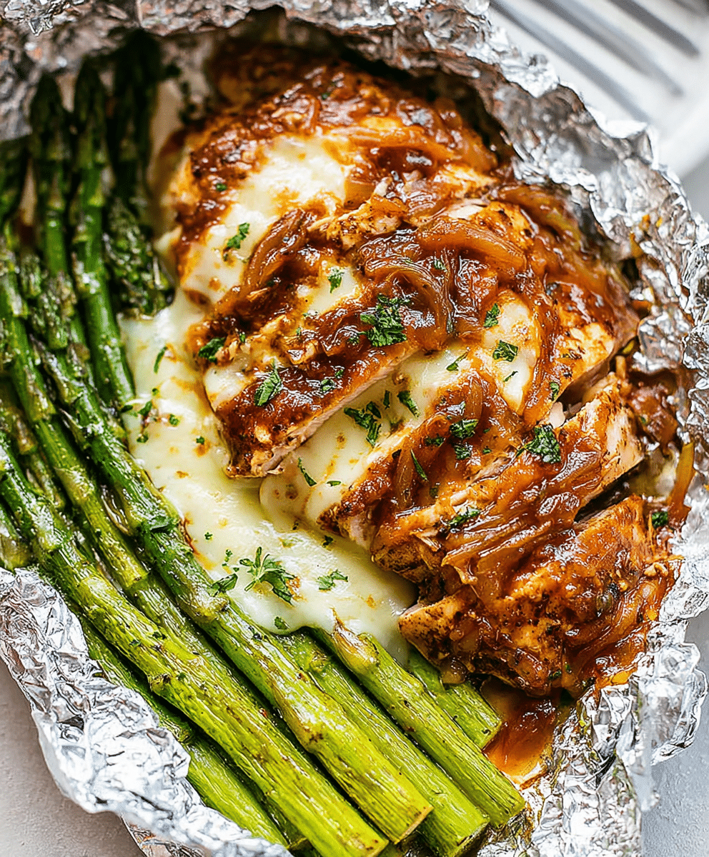 Easy French Onion Chicken Foil Packets with Cheesy Asparagus – Family Dinner Favorite