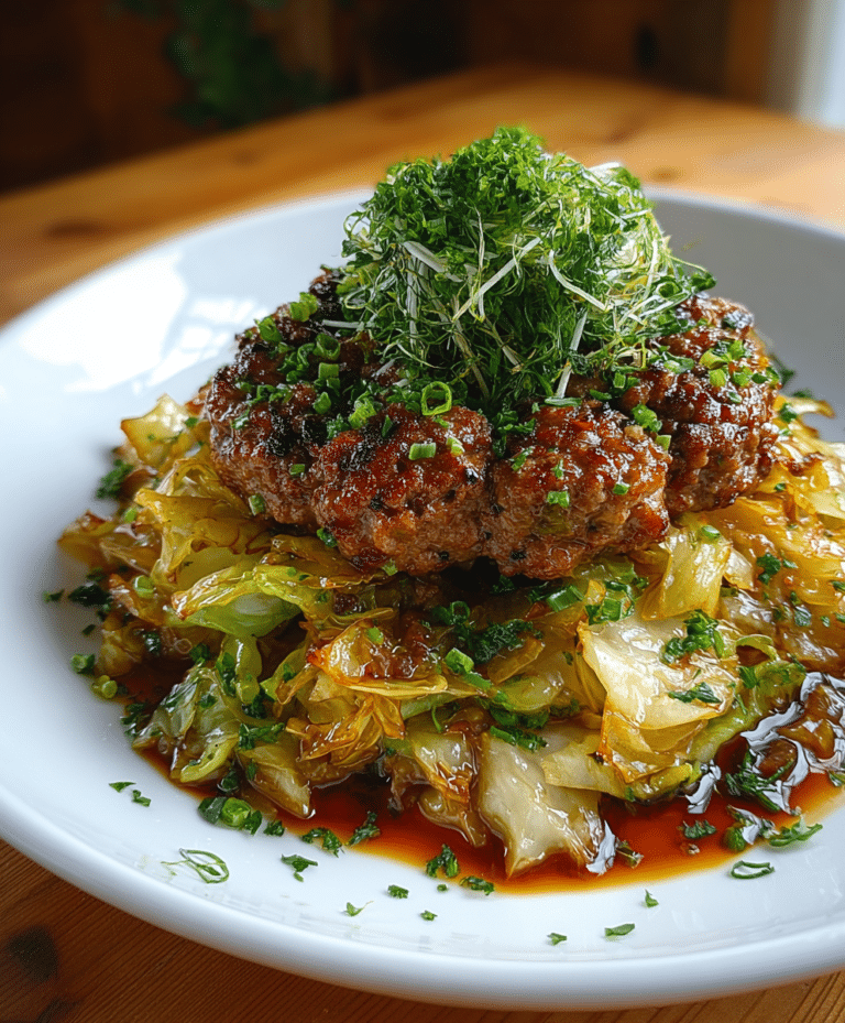 This Easy Garlic Ginger Ground Beef and Tender Cabbage Skillet Stack with Fresh Herbs is a savory, high-protein one-pan meal perfect for weeknight dinners or a quick family-friendly dinner. Juicy ground beef is infused with garlic and fresh ginger, then combined with tender shredded cabbage and coated in a savory mix of soy sauce, oyster sauce, and a hint of honey. The result is a hearty, flavorful dish with a subtle sweetness, savory depth, and a satisfying texture from the lightly tender cabbage. Garnished with fresh parsley or green onions, this skillet stack is simple, wholesome, and perfect for anyone craving a balanced, comforting, and protein-packed meal.