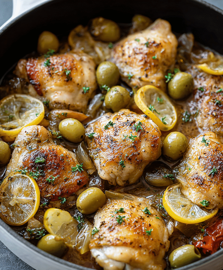 Discover this Easy Lemon Olive Chicken Thighs Recipe – a quick, one-pan dinner bursting with Mediterranean flavors. Juicy chicken thighs, tangy lemon, and flavorful olives make this a go-to weeknight meal.