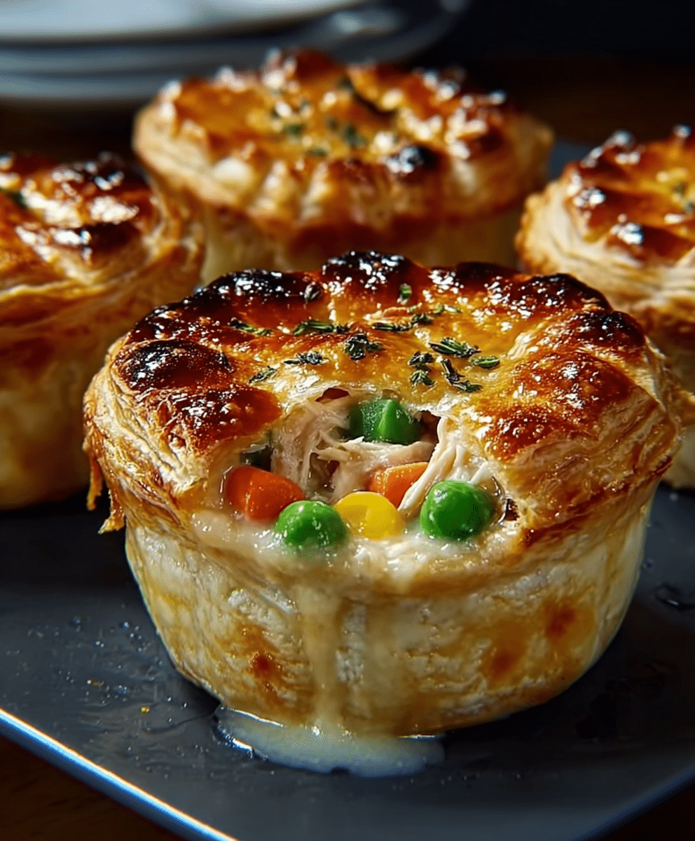 These mini chicken pot pies are creamy, savory, and wrapped in a flaky crust, perfect for weeknight dinners or family gatherings.