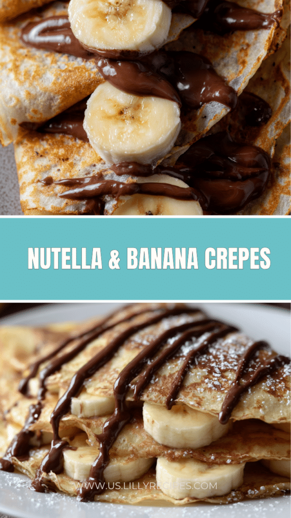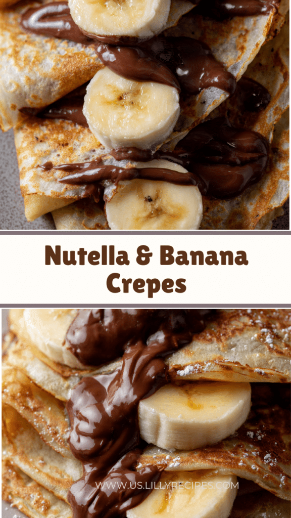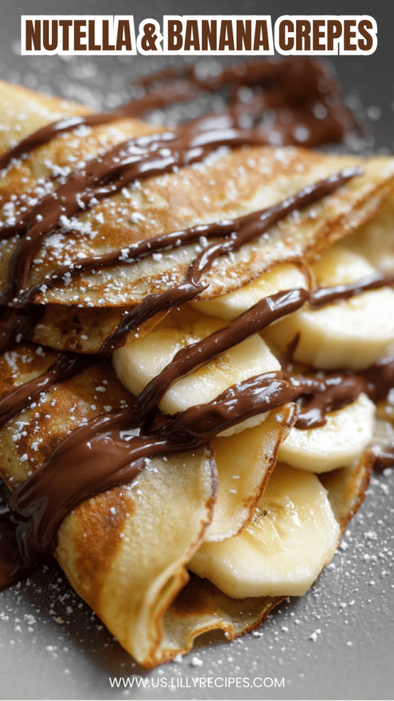 Nutella Banana Crepes are best served warm, freshly filled, and lightly dusted with powdered sugar. They can be folded into triangles or rolled for a café-style presentation.