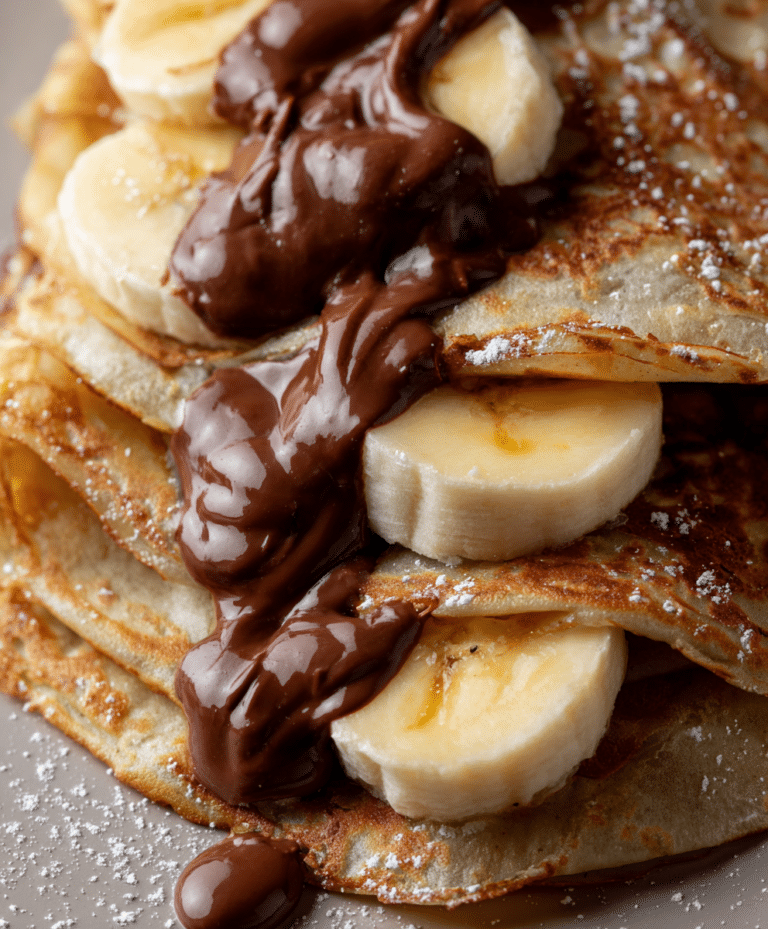 Light French-style crepes filled with creamy Nutella and fresh banana slices.