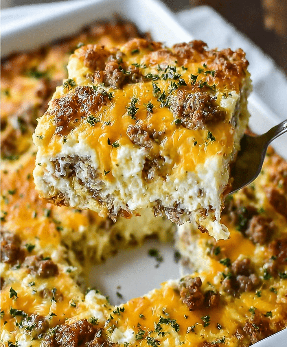 This Savory Breakfast Sausage and Cheese Casserole is rich, savory, and deeply comforting. The sausage provides bold seasoning, the eggs create a soft and fluffy texture, and the cheddar cheese melts into creamy layers throughout. The crescent roll base adds a buttery, slightly flaky foundation that ties everything together into a balanced, satisfying bite.