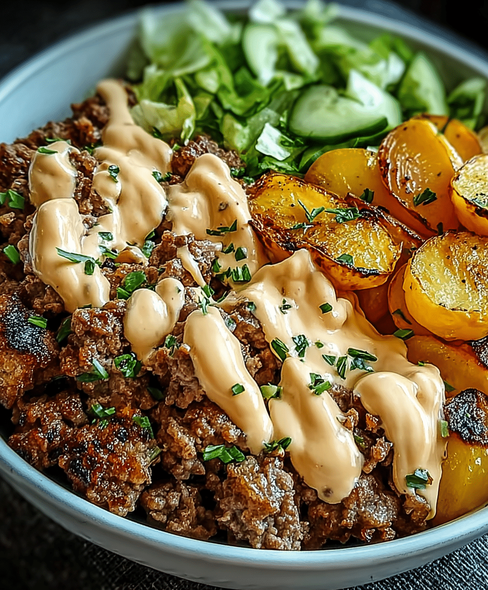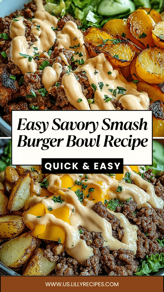 Savory Smash Burger Bowl is a quick, easy, and healthy comfort food recipe that delivers all the bold flavors of a classic burger without the bun. This Savory Smash Burger Bowl combines juicy smashed beef, crispy potatoes, caramelized onions, fresh lettuce, tangy pickles, and a creamy, flavorful sauce for a satisfying low-carb, high-protein meal. Perfect for busy weeknights, meal prep, or anyone craving a guilt-free burger alternative, this bowl offers incredible texture—from crispy to creamy—and rich, savory flavor in every bite. If you’re looking for a healthy burger bowl recipe, a simple high-protein dinner, or an easy low-carb comfort food idea, this Savory Smash Burger Bowl is the perfect solution.
