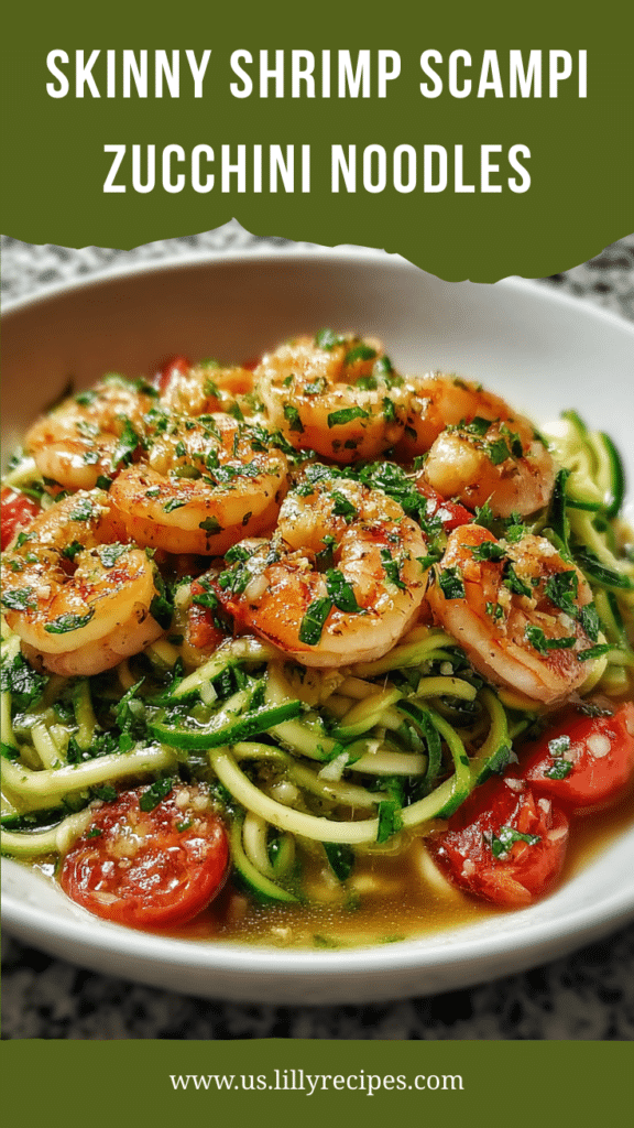 Skinny Shrimp Scampi Zucchini Noodles are a light, low calorie twist on classic shrimp scampi, made with tender garlic lemon shrimp tossed over fresh spiralized zucchini noodles. This easy Skinny Shrimp Scampi Zucchini Noodles recipe delivers all the bright, buttery, garlicky flavor you love without heavy pasta, making it perfect for weeknight dinners, healthy meal prep, or a quick 30-minute meal. Juicy shrimp are sautéed in olive oil with garlic, red pepper flakes, and fresh lemon zest, then combined with zucchini noodles that stay tender yet slightly crisp. Optional baby spinach and cherry tomatoes add freshness and color, while Parmesan cheese gives a savory finish. If you’re craving a healthy shrimp scampi recipe that’s high in protein, low in carbs, and full of flavor, this dish is a satisfying, vibrant choice.