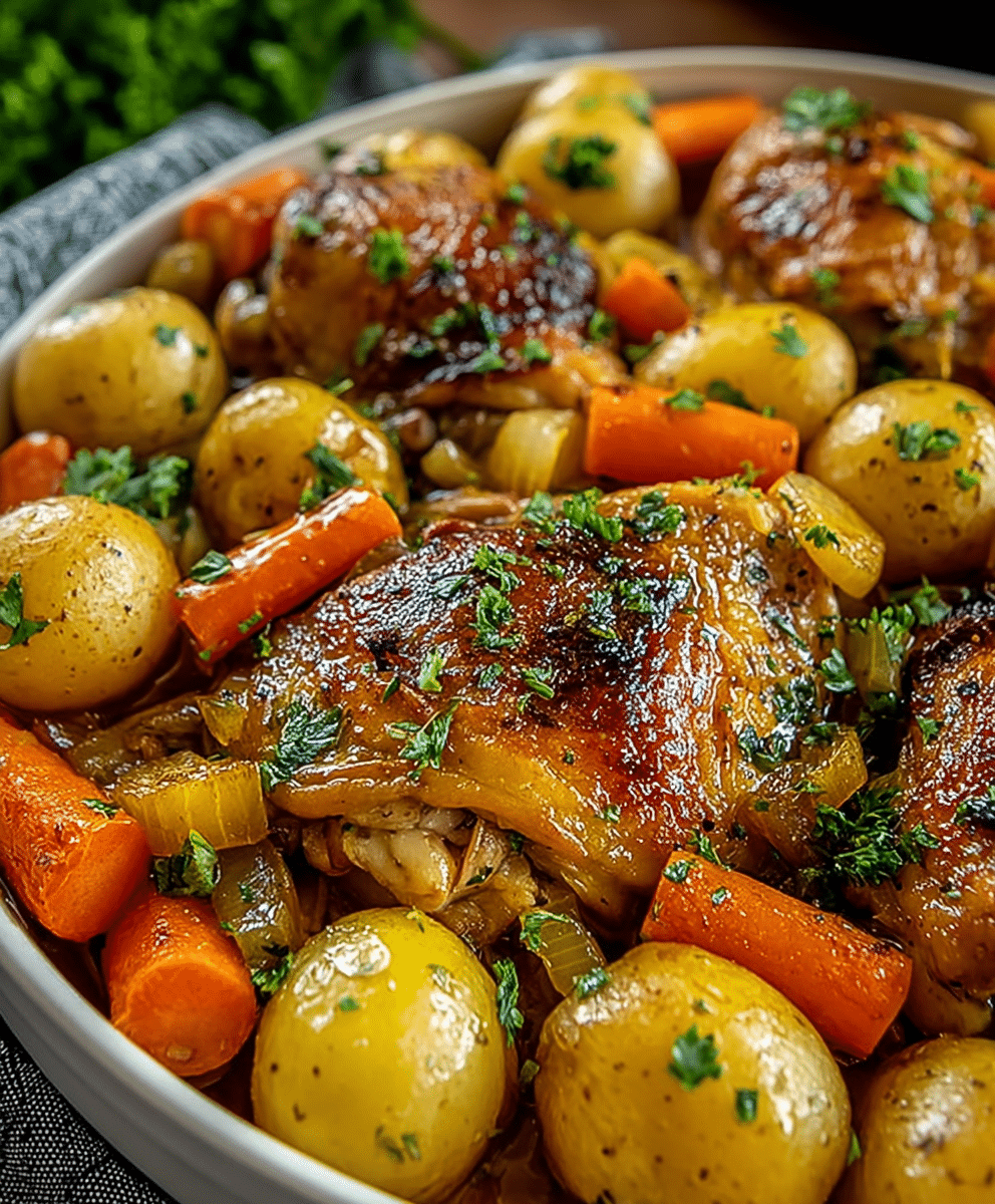 This recipe combines the natural sweetness of honey with the umami depth of soy sauce, fresh garlic, and ginger. As the chicken slowly cooks, it becomes fork-tender and absorbs every drop of that glossy honey garlic sauce. The vegetables soften beautifully while maintaining their color and texture, creating a complete meal in one pot.