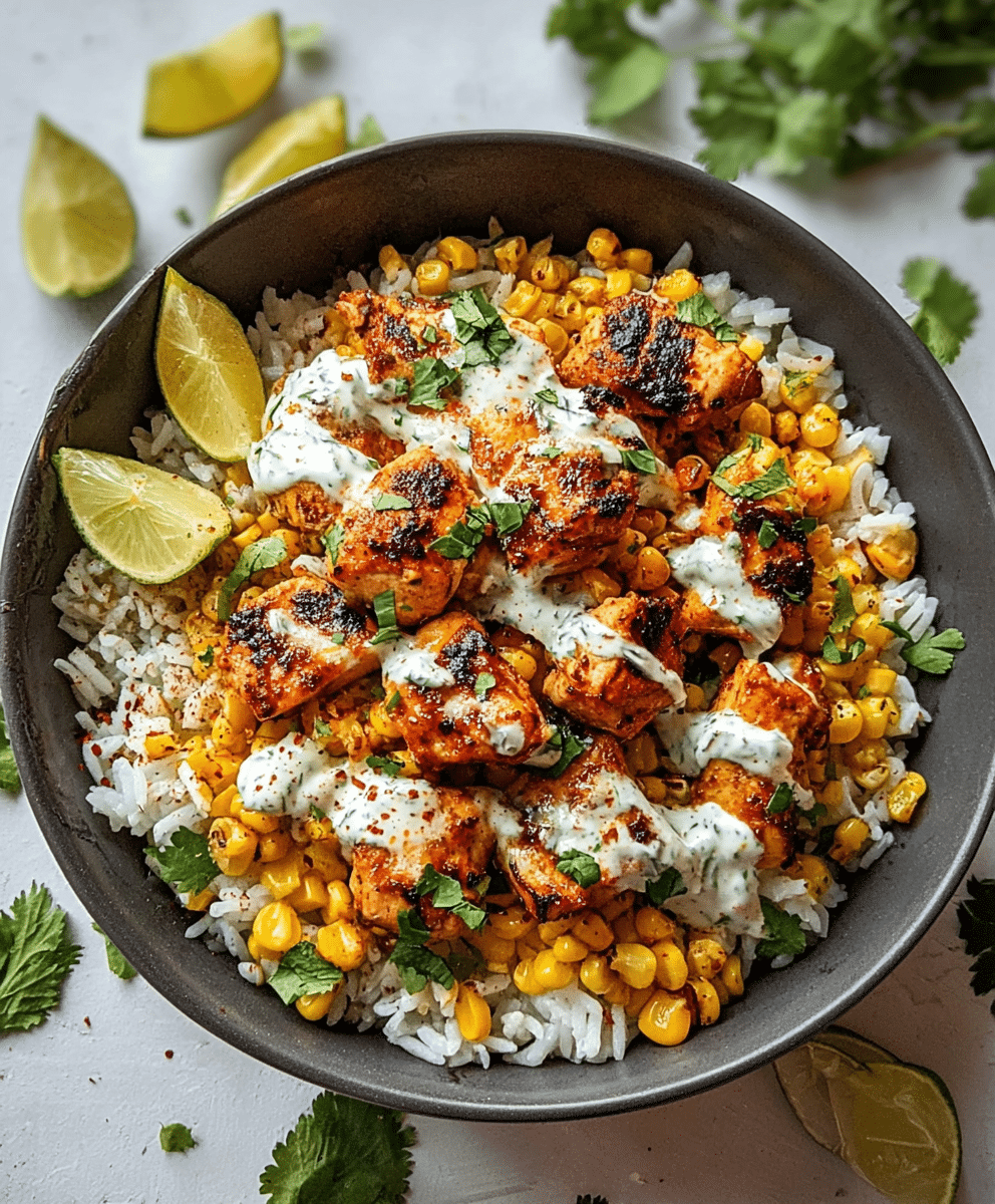 Indulge in the vibrant flavors of the Street Corn Chicken Rice Bowl, a delightful dish that brings together juicy chicken thighs, smoky corn, and creamy Cotija cheese. Perfect for busy weeknights or casual gatherings, this customizable bowl is ready in about 50 minutes and packed with bold, zesty flavor in every bite.