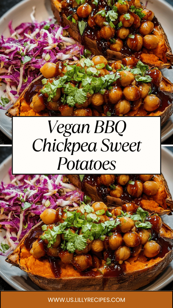 Vegan BBQ Chickpea Sweet Potatoes are the ultimate healthy comfort food, combining tender roasted sweet potatoes with smoky BBQ chickpeas and a crisp, tangy cabbage slaw. This easy Vegan BBQ Chickpea Sweet Potatoes recipe is perfect for busy weeknights, plant-based meal prep, or a satisfying vegan dinner that feels hearty without being heavy. Each sweet potato is roasted until soft and caramelized, then stuffed with saucy chickpeas coated in rich vegan BBQ sauce and topped with a vibrant red cabbage and carrot slaw. The result is a beautiful balance of sweet, smoky, savory, and fresh flavors. If you’re looking for a high-fiber vegan main course, a wholesome dairy-free dinner idea, or a crowd-pleasing meatless meal, Vegan BBQ Chickpea Sweet Potatoes deliver bold flavor and nourishing ingredients in every bite.