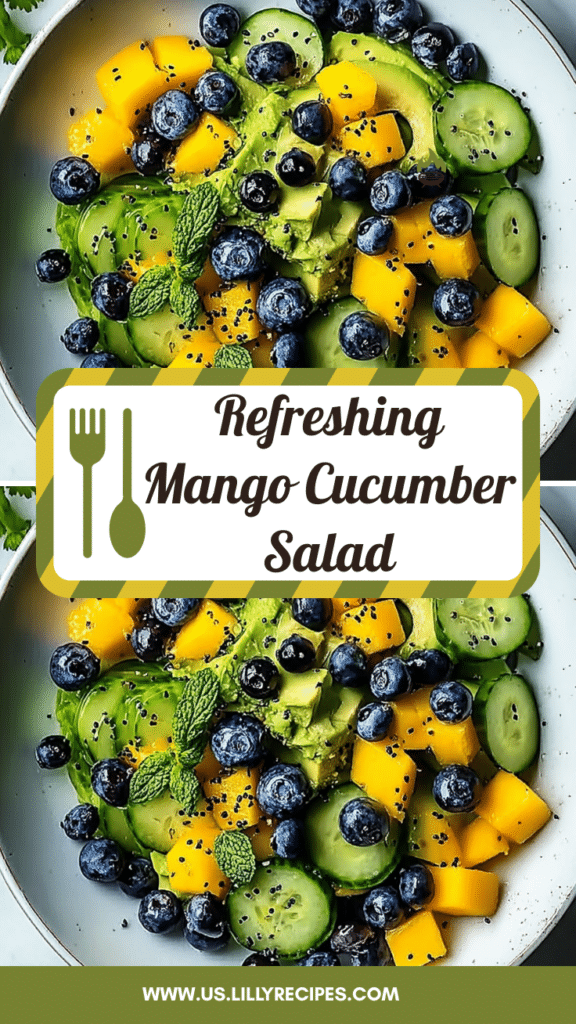 Fresh Mango Cucumber Salad with Blueberries and Avocado is a quick, nutritious, and visually stunning salad perfect for summer lunches or light dinners. Its combination of sweet, crisp, and creamy textures, paired with a zesty lime-honey dressing, makes every bite refreshing and satisfying. Easy to prepare in just 15 minutes, this salad is perfect for family meals, picnics, or entertaining guests. Save this recipe, share it with friends, and enjoy the vibrant flavors of a fresh, colorful, and healthy summer salad any time.