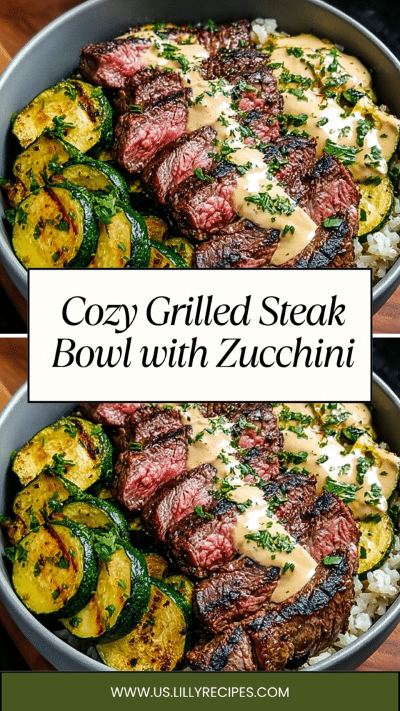 Grilled Steak Bowl with Sauce & Grilled Zucchini combines juicy, flavorful steak with charred vegetables, creamy herb sauce, and a hearty base for a meal that’s quick, customizable, and perfect for meal prep. Whether for a weeknight dinner or prepped lunches, this bowl offers a satisfying balance of savory, creamy, and fresh flavors that everyone will love. Save it, share it, and enjoy a restaurant-quality meal at home in just 40 minutes.