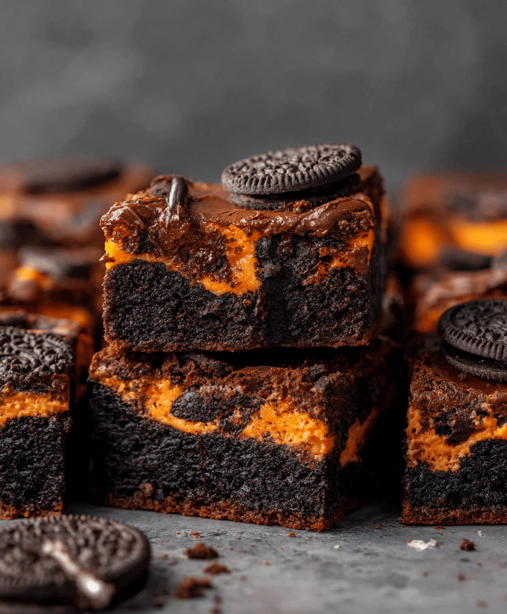 These fudgy Halloween Oreo Stuffed Brownies are the ultimate spooky treat! Rich, chocolatey brownies are layered with whole Oreos in the center for an indulgent surprise in every bite. Perfect for Halloween parties or a decadent dessert any time of year.