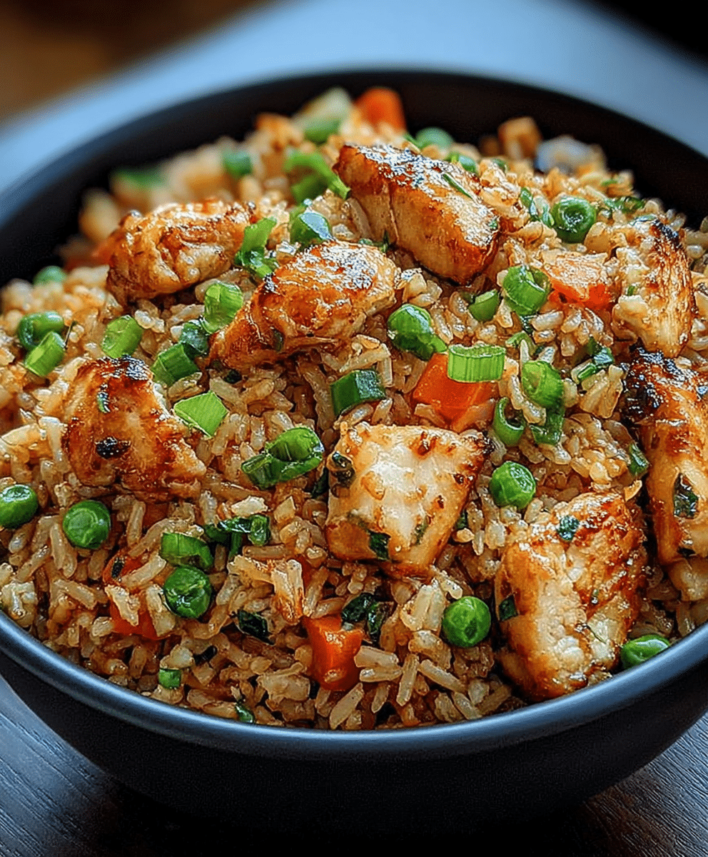 This fried rice is savory, garlicky, and lightly tangy from the rice vinegar. The crispy chicken adds texture, while the vegetables bring sweetness and freshness. The overall flavor is balanced and comforting, with umami depth from the soy sauce and optional oyster sauce.