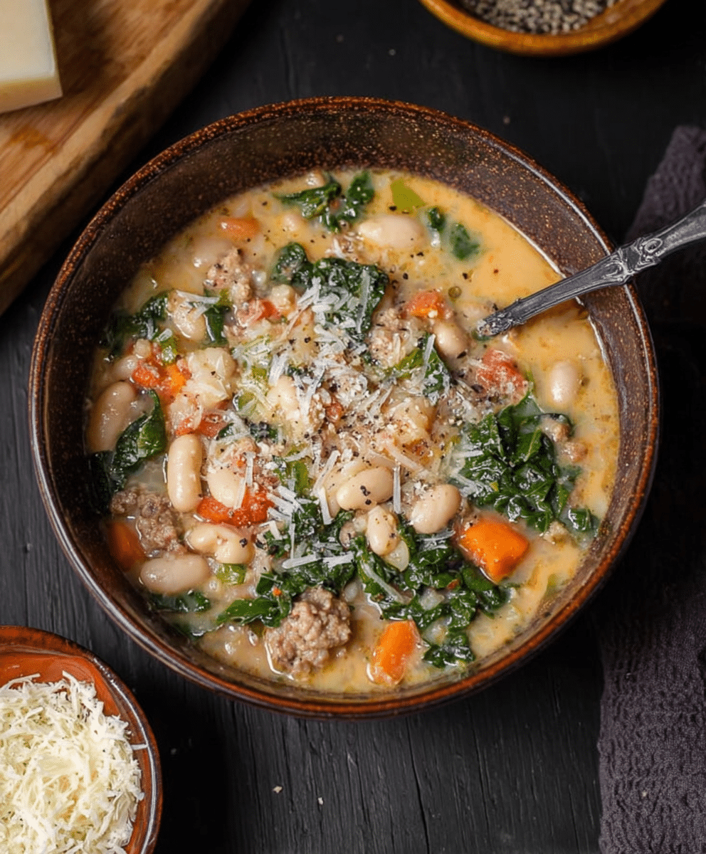 Italian Sausage and White Bean Soup is comfort food at its finest. The creamy, hearty broth, tender vegetables, and savory sausage make each bite satisfying and nourishing. Perfect for weeknight dinners, meal prep, or entertaining guests, this soup is easy to customize and freezes beautifully for later enjoyment.