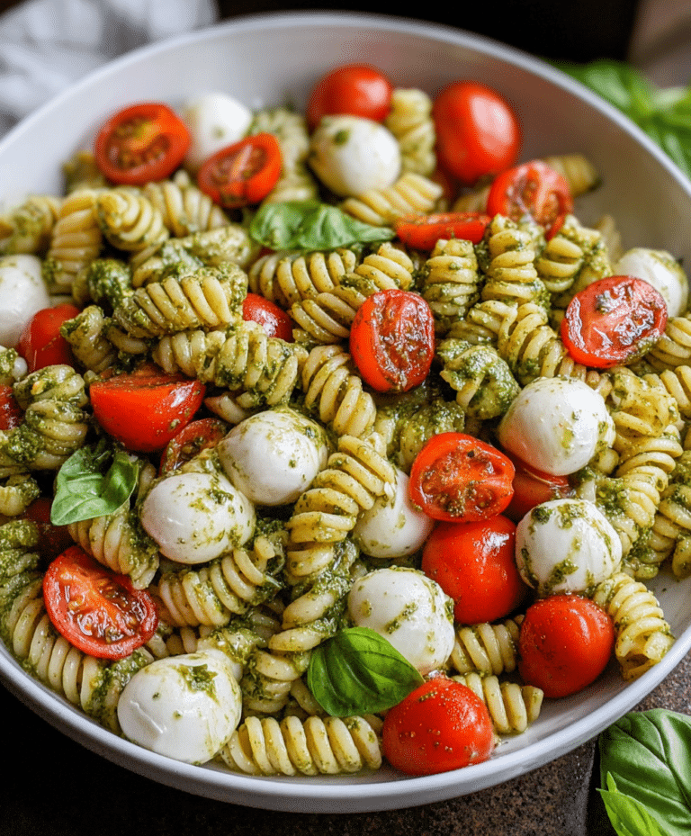 This Pesto Caprese Pasta Salad recipe is a celebration of fresh, bold flavors in every bite. Tender pasta coated in herby pesto, sweet cherry tomatoes, and creamy mozzarella make this salad vibrant, refreshing, and satisfying. Perfect for summer gatherings, light lunches, or quick meal prep, it’s easy to make, customizable, and a guaranteed hit with friends and family. Bright, colorful, and full of flavor, this salad proves that simple ingredients can deliver extraordinary taste.