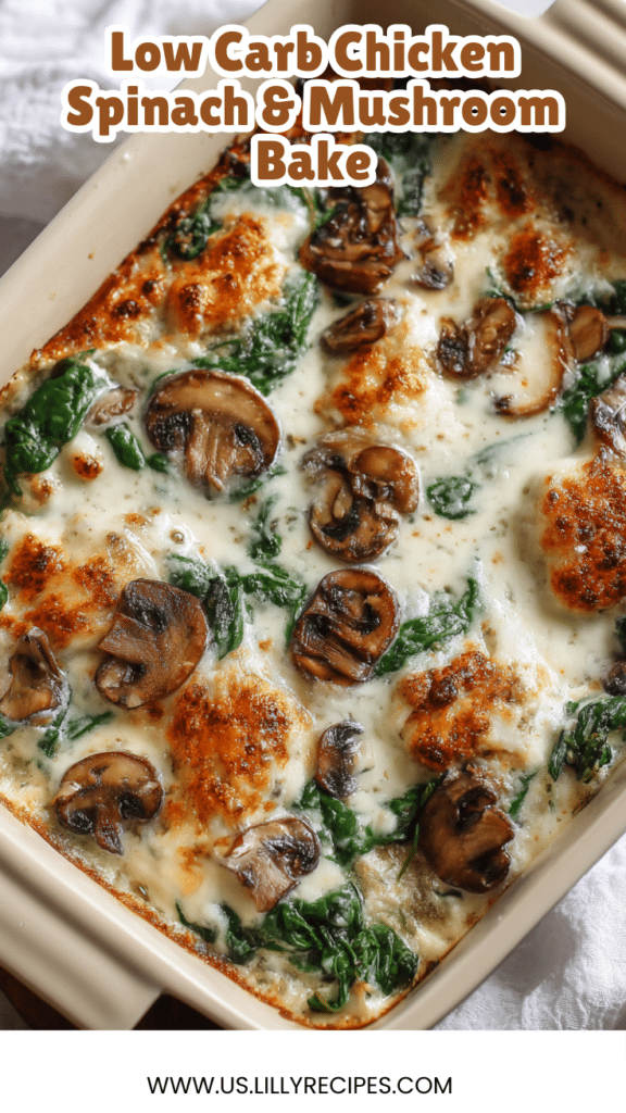 This chicken spinach and mushroom low carb oven dish is a creamy, cheesy, protein-packed meal perfect for weeknights. Full of flavor and simple to prepare, it’s a satisfying low-carb option that reheats beautifully.