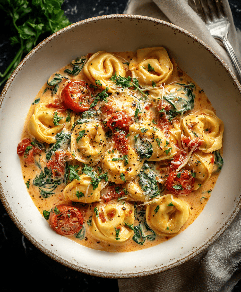 With simple ingredients, minimal prep, and a sauce that’s rich and flavorful, this recipe is approachable for home cooks yet impressive enough to serve guests. The combination of sun-dried tomatoes, fresh spinach, and Parmesan creates a vibrant, creamy sauce that clings beautifully to tender tortellini.