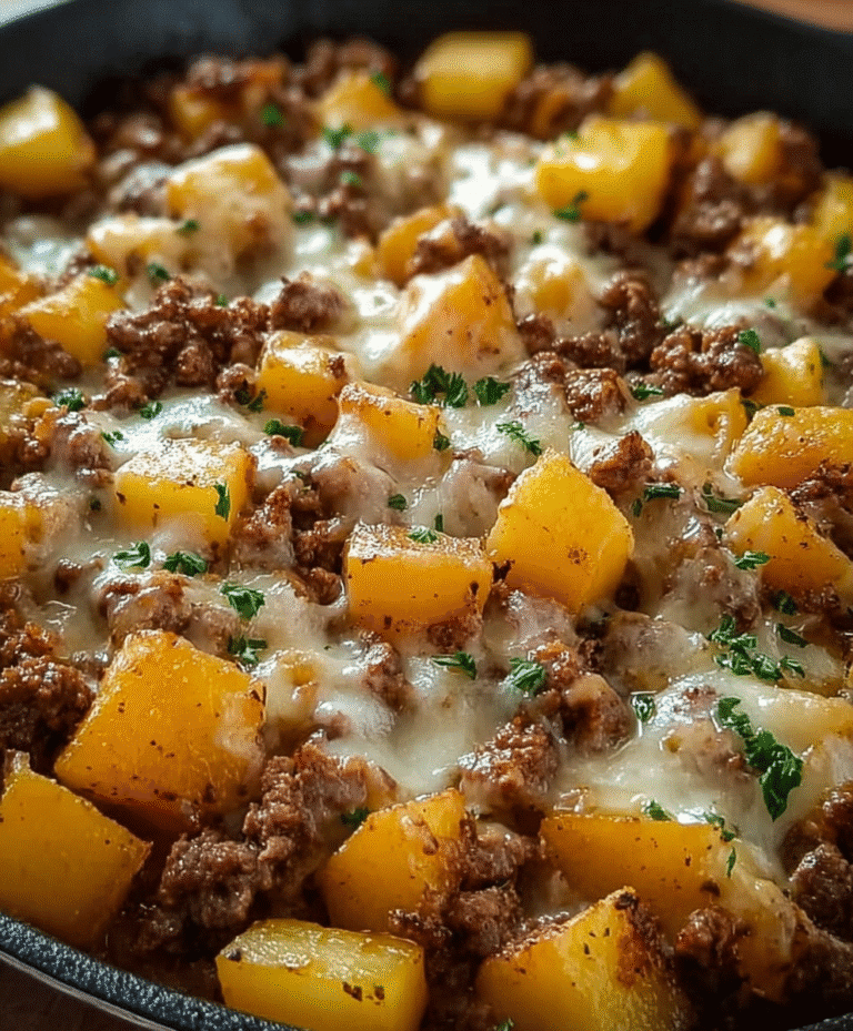 The One-Pan Cheesy Meat & Potato Skillet is everything comfort food should be—rich, hearty, cheesy, and quick. With just one skillet, a handful of everyday ingredients, and 30 minutes of cooking time, you’ll have a dinner that makes everyone happy.
