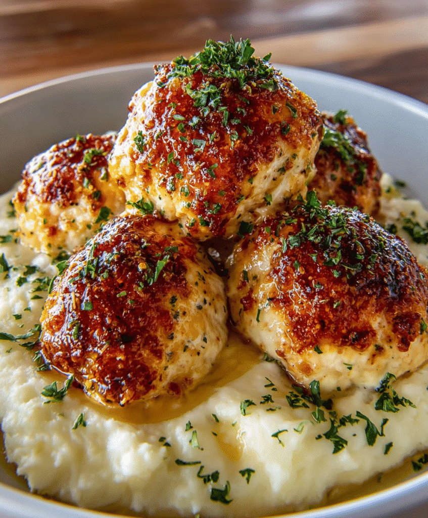 If you’ve been searching for a dinner that’s both decadent and comforting, look no further than Parmesan Cloud Chicken Bombs. These tender, golden-baked chicken balls are infused with herbs, garlic, and Parmesan, then smothered in a luxuriously creamy Parmesan sauce. The result is a dish that’s as elegant as it is comforting — perfect for weeknight dinners, family meals, or even a small gathering with friends.