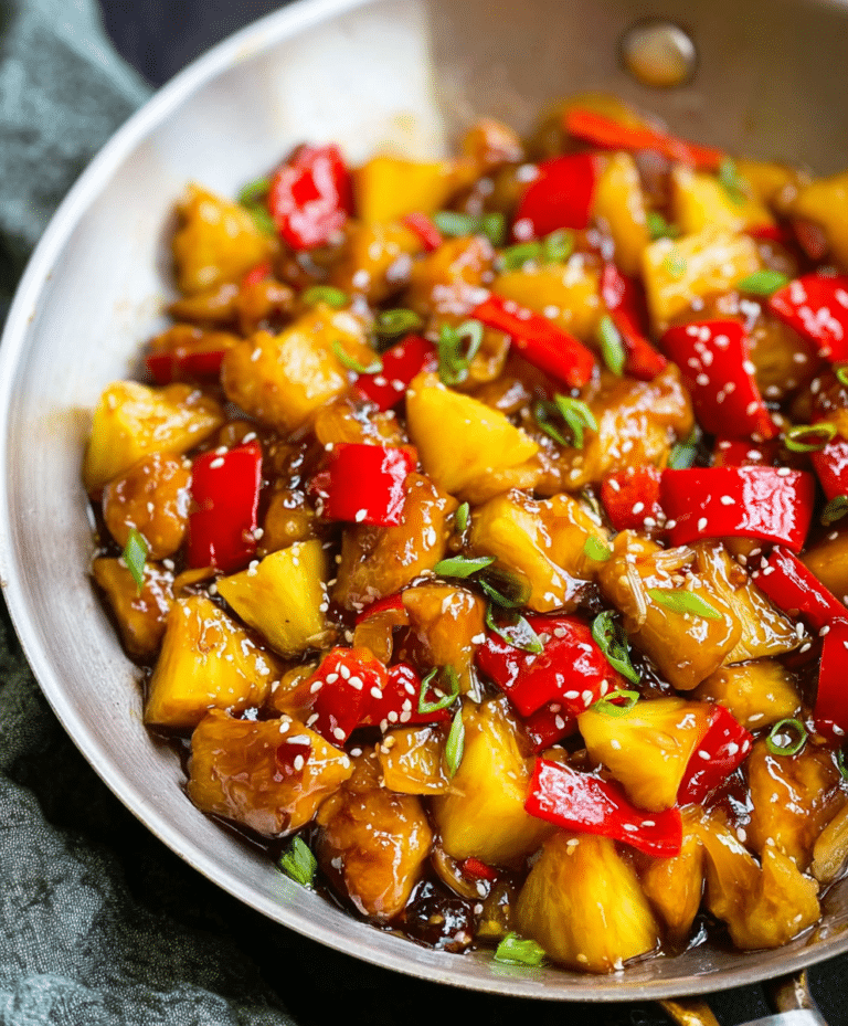 Pineapple chicken is one of those dishes that instantly brings bold flavor and vibrant color to the table. It’s sweet, savory, slightly tangy, and deeply satisfying—all while being quick enough for a busy weeknight. This Pineapple Chicken recipe by Sara Welch is a skillet-based stir fry that combines tender chicken thighs, juicy pineapple chunks, crisp bell peppers, and a glossy Asian-inspired sauce that coats every bite beautifully.