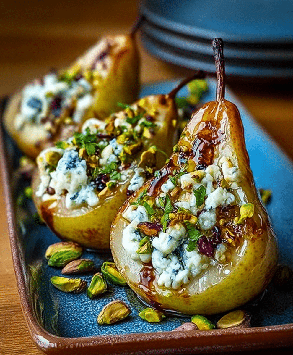 Roasted Pears with Blue Cheese and Pistachios is one of those recipes that delivers exceptional flavor with minimal effort. It proves that you don’t need complicated techniques or long ingredient lists to create something unforgettable. With the natural sweetness of pears, the richness of blue cheese, and the satisfying crunch of pistachios—all finished with a touch of honey—this dish offers a perfect fusion of savory and sweet.