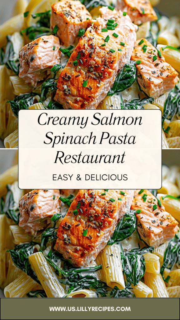 Salmon Spinach Pasta is a creamy, comforting, and nutritious dish that’s simple enough for a weeknight but elegant enough for special occasions. With tender salmon, fresh spinach, and a rich garlic-Parmesan sauce brightened with lemon, every bite is a delight. Quick to make, full of flavor, and balanced in nutrition, this pasta dish will become a favorite for seafood and pasta lovers alike. Serve immediately, savor every creamy bite, and enjoy a wholesome, satisfying meal that’s sure to impress.