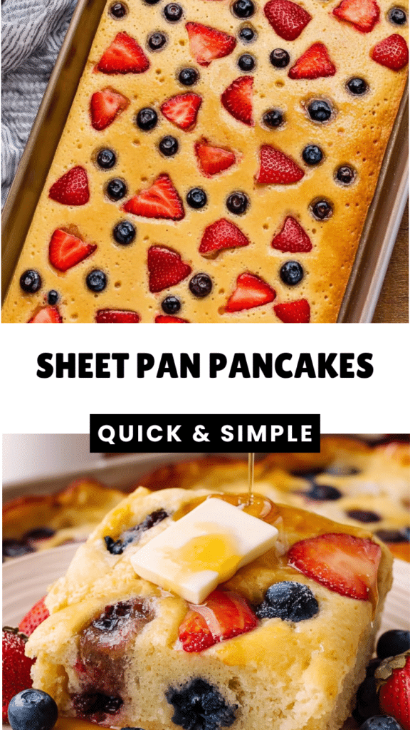 Sheet Pan Pancakes with mixed berries allow you to make a crowd-pleasing breakfast without standing over the stove. Golden, fluffy, and easy to serve.