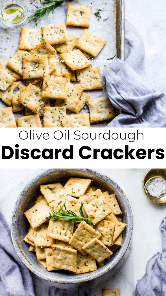Make crisp and tasty homemade sourdough crackers using your sourdough discard. This simple recipe utilizes olive oil, sourdough discard, all purpose flour, and seasonings to create flavorful, and tender sourdough crackers delicious for scooping up dips, enjoying with cheese, soups, or as a snack. This recipe is vegetarian and vegan.
